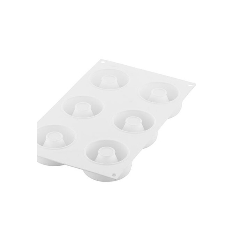 Lo stampo Oblio95 è composto da 6 cavità a forma circolare di 95 ml ciascuna. Ideale in versione semifreddo e cotta.