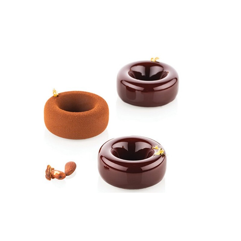 La sinuosità e tridimensionalità di Oblio95 lo rendono un elegante stampo per monoporzioni, ideale per essere utilizzato come dessert al piatto o come raffinata monoporzione da pasticceria.