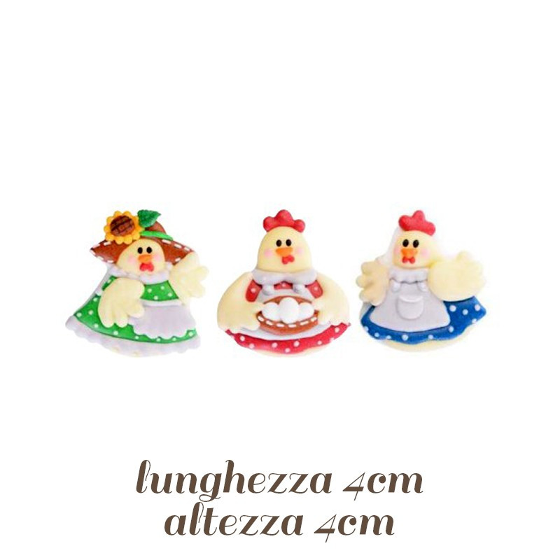 Vendita di decorazioni di zucchero a forma di gallo e di gallina, da usare per torte e dolcetti. Sono deliziosi, si gustano insieme alle torte. Spedizioni 4.90