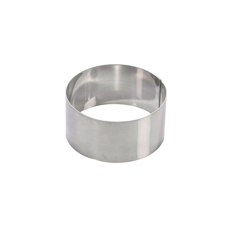 Anello per torte in acciaio h.5 cm. di dimensioni a scelta, attrezzatura usatissima in pasticceria per mousse e semifreddi, puo' essere usato per montare e preparare qualsiasi tipo di torta.