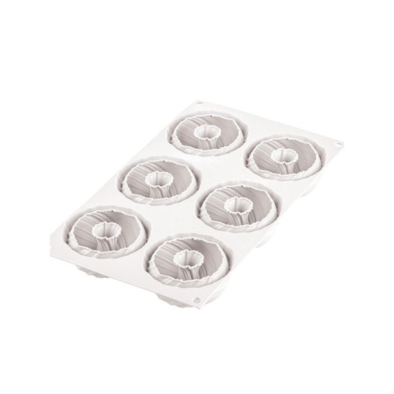 Intreccio105 è composto da 6 cavità del volume di 105 ml ciascuna, e garantisce risultati impeccabili non solo in versione semifreddo e mousse, ma anche in versione cotta.