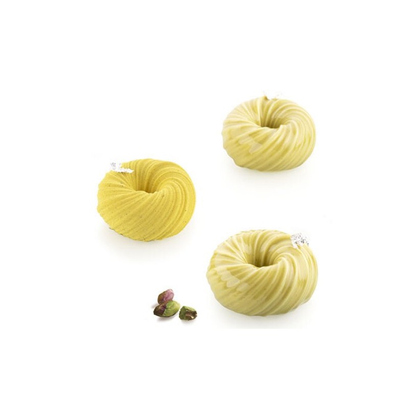 La trama di avvolgenti fili intrecciati rende lo stampo Intreccio105 perfetto per la creazione di raffinate monoporzioni tridimensionali.